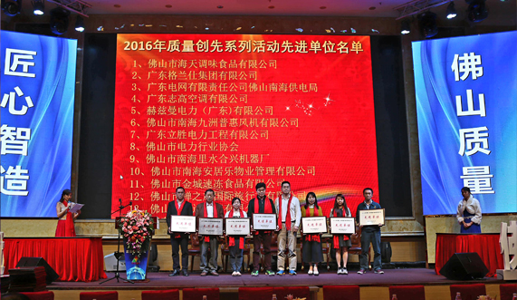 我司被评为“2016年佛山市质量创新管理活动先进单位”
